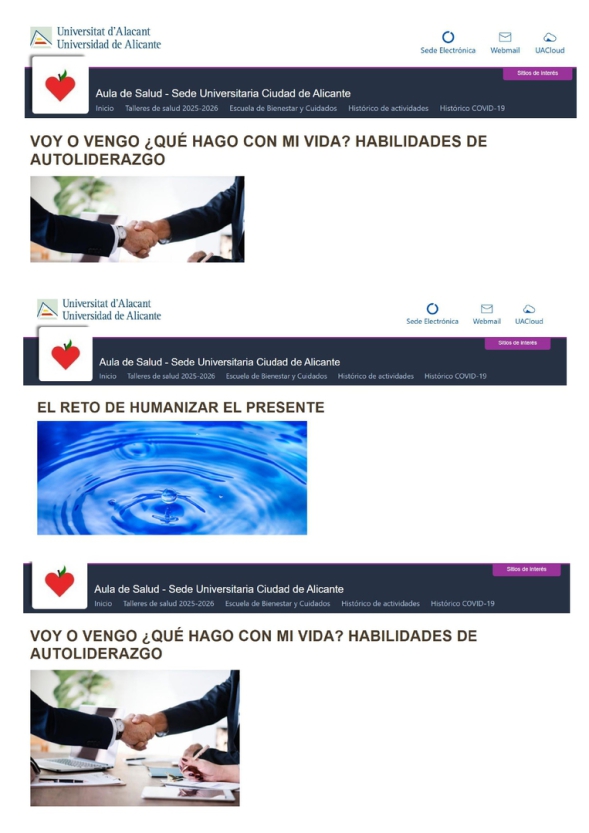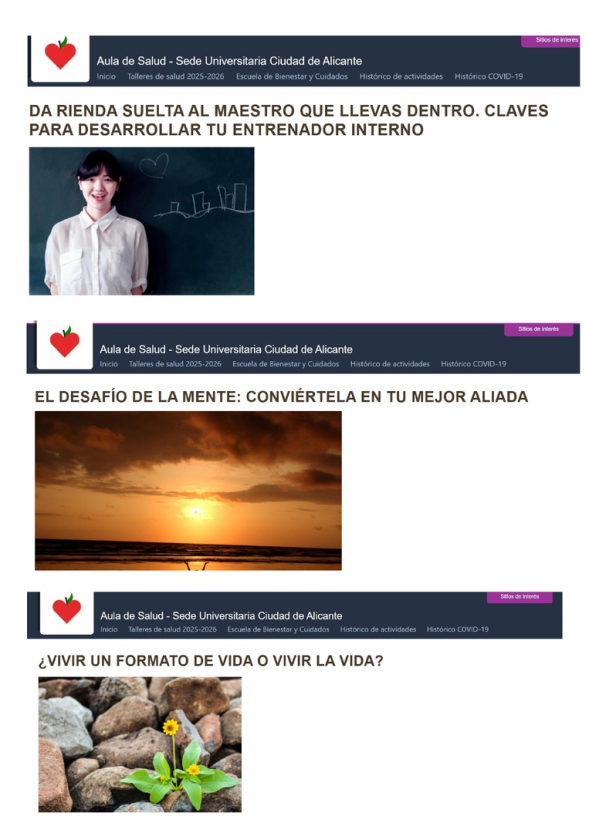 Es una suerte para nosotras tener cada año la oportunidad de participar como ponentes en la formación que ofrece la Universidad de Alicante en su programa AULA DE SALUD , así como en los cursos que imparte la EVES (Escuela valenciana de estudios de salud).